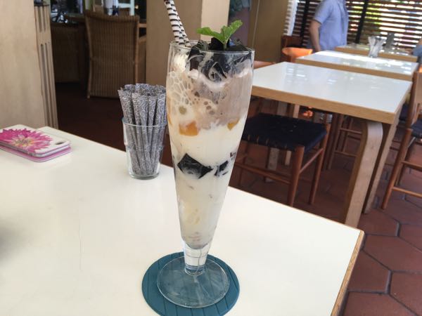 サンマルクカフェでプレミアムココアとチョコバナナパフェ。